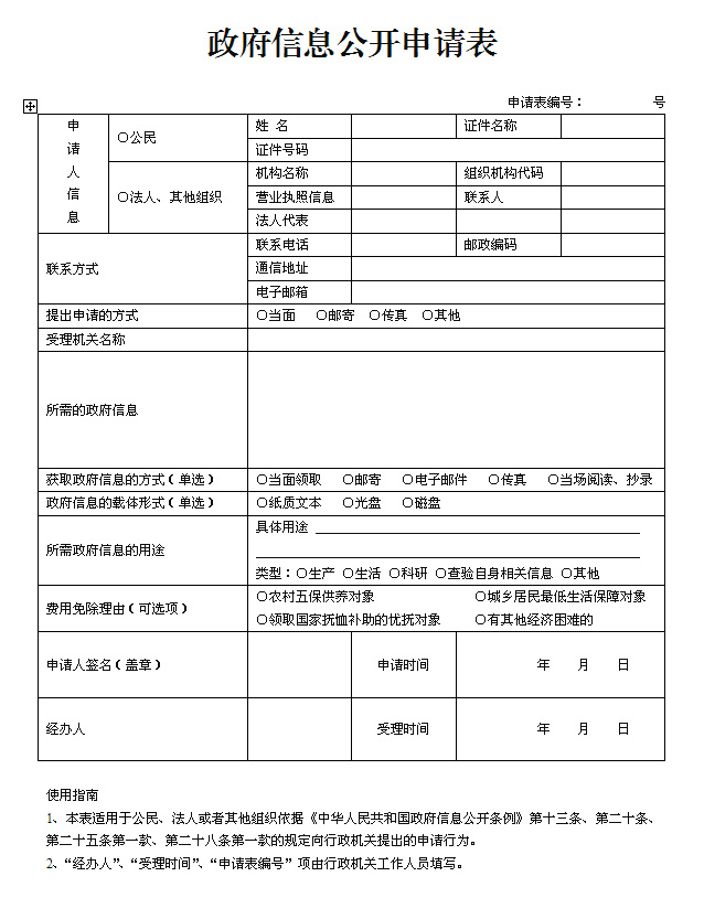 青神县政府信息公开申请表(空表).doc