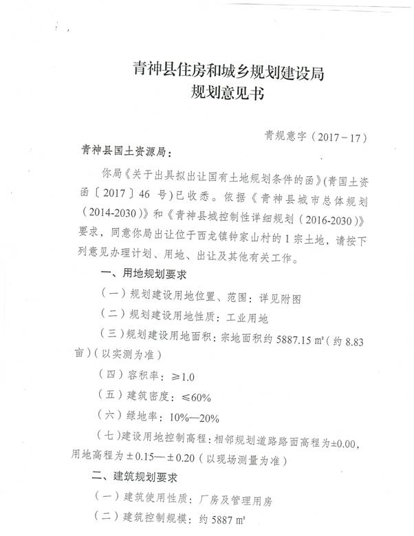 (四)规划建设用地性质:工业用地。