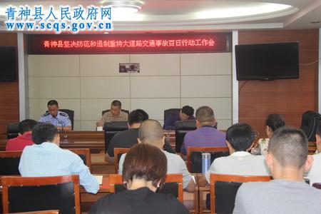 会上,张强副局长传达了“9.12”全市“坚决防范和遏制重特大道路交通事故百日行动”工作会议精神,并就“百日行动”县级相关部门牵头任务、配合部门工作职责和交叉检查迎检工作进行了安排部署。青城镇政府就贯彻落实工作任务作了发言。